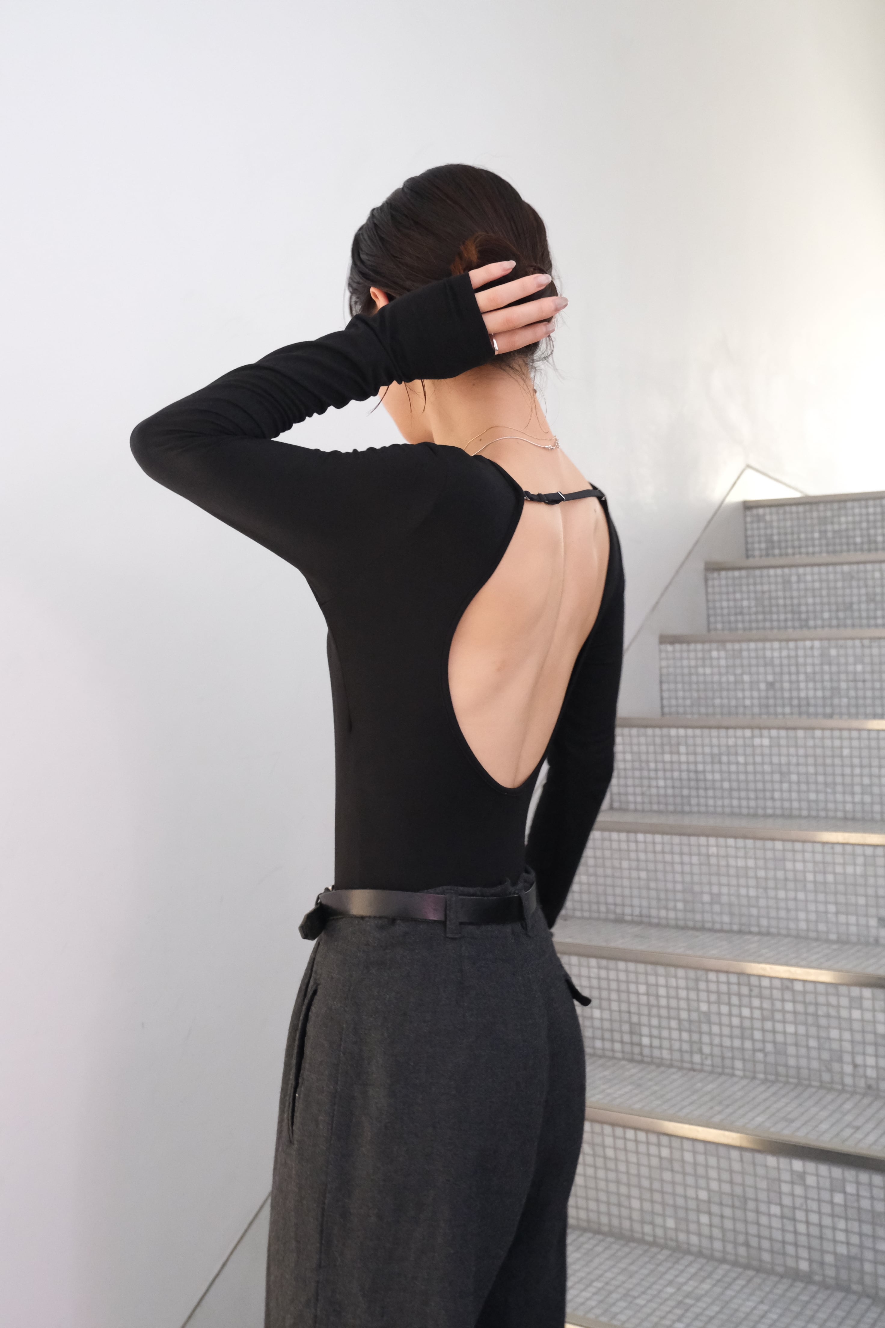 【 determ; 】Collagen Strappy Bodysuit ( black )
