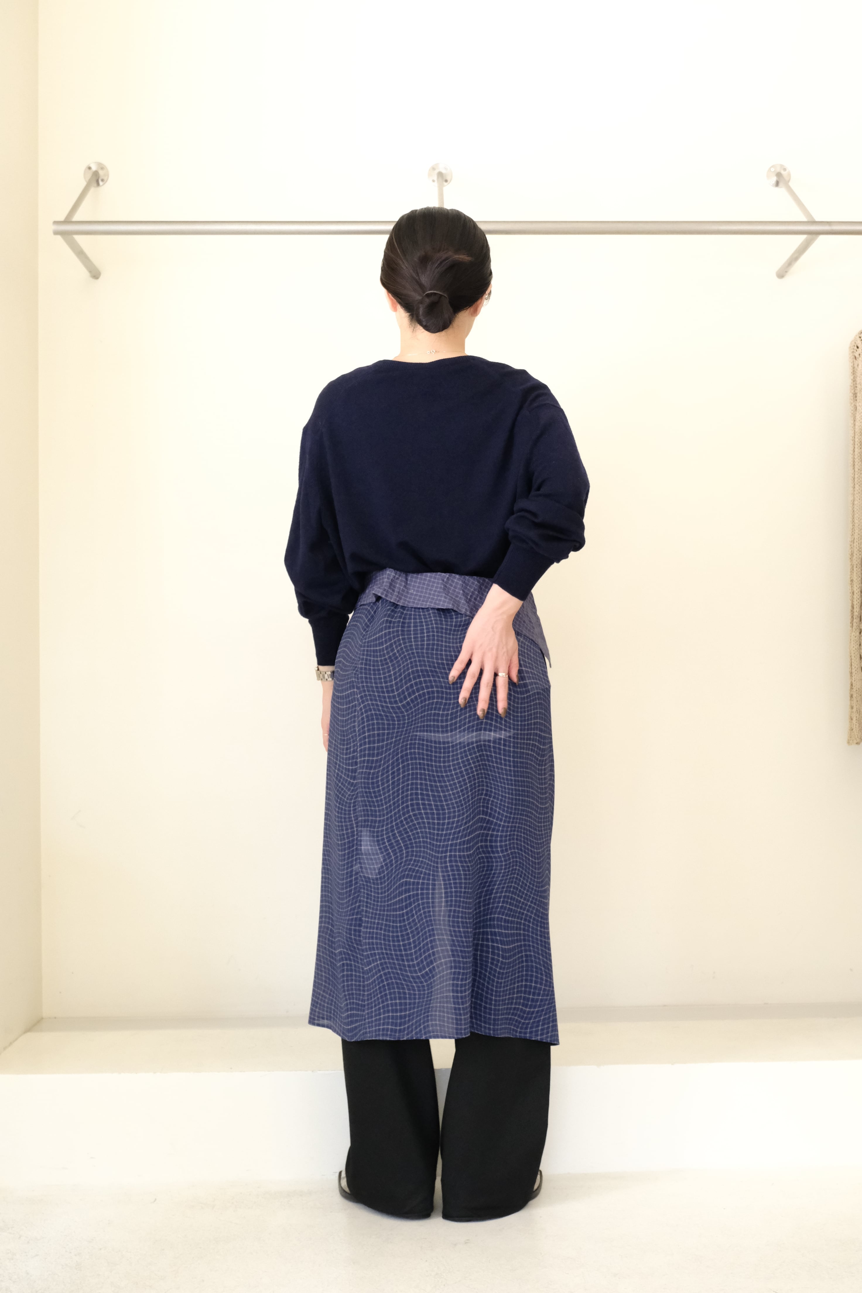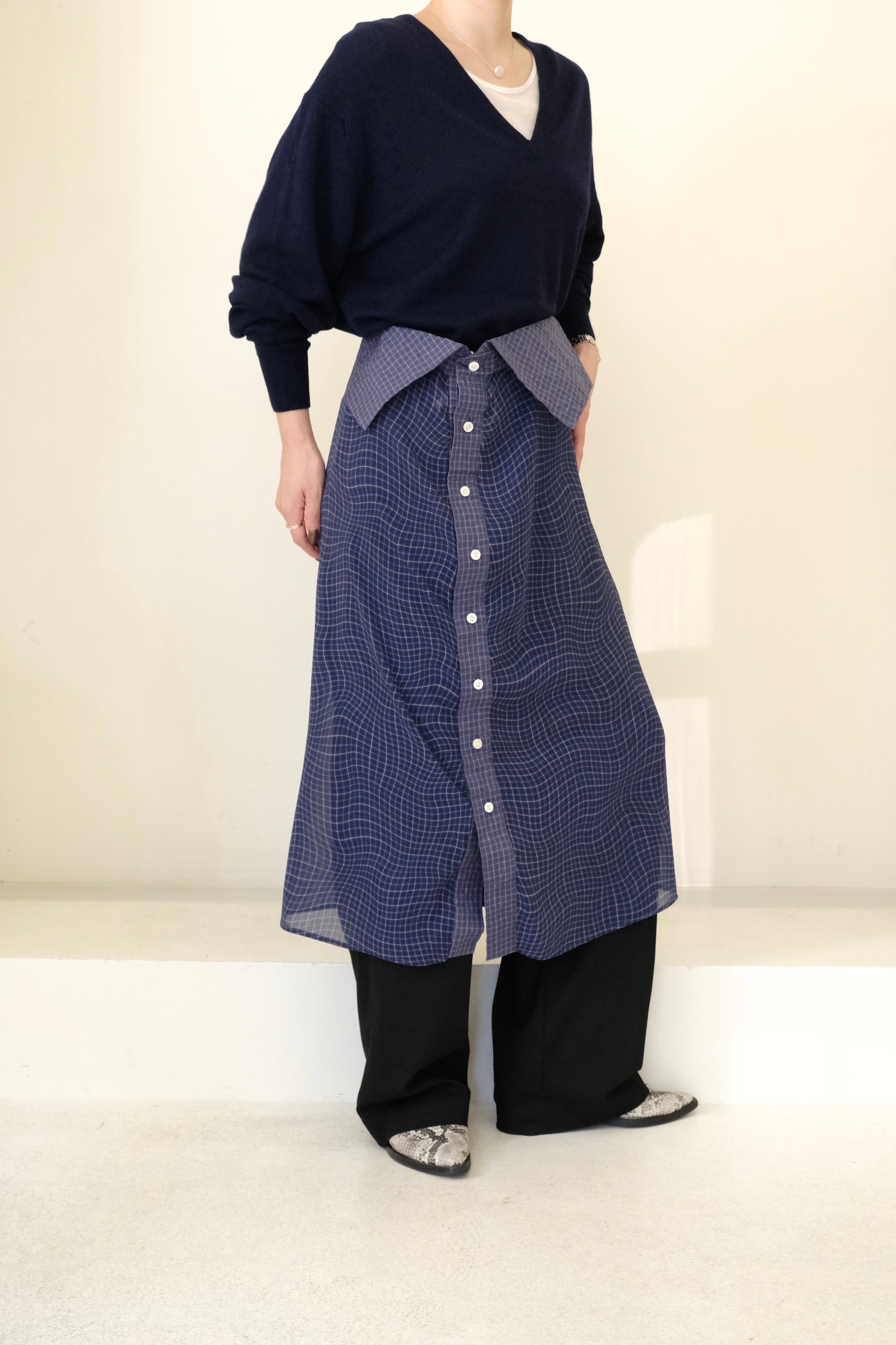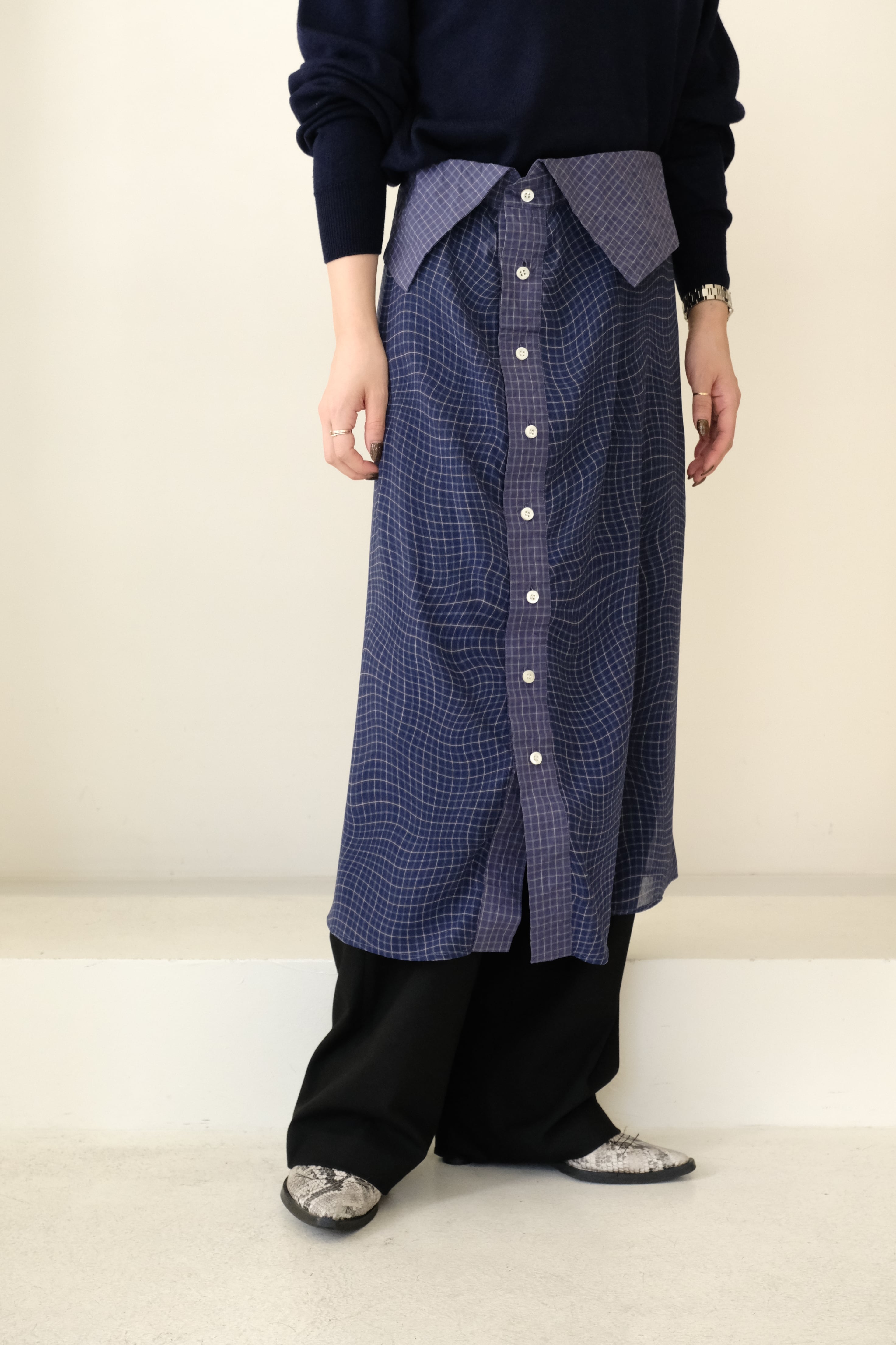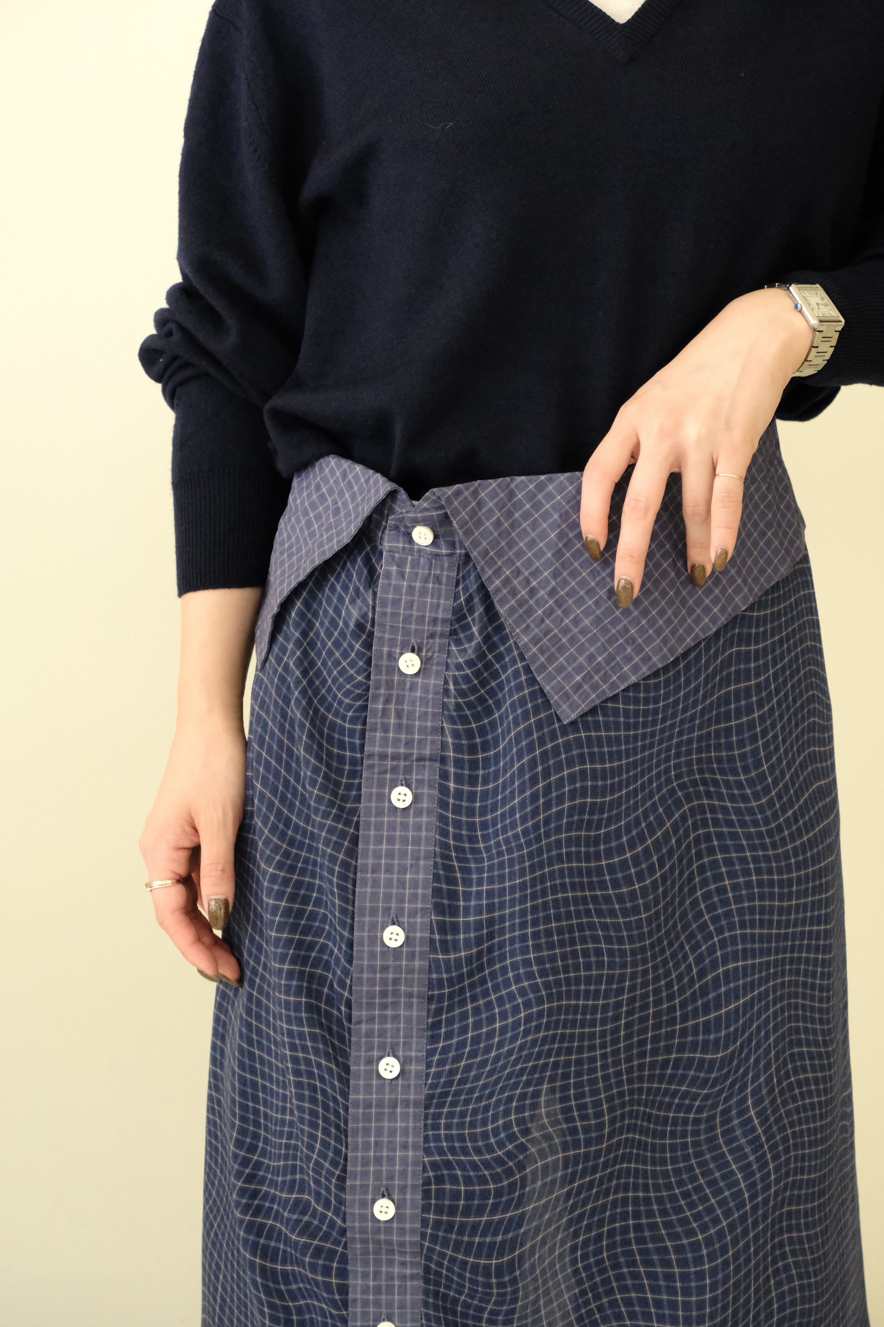 【 BELPER 】PLAID PATCHWORK SKIRT ( NAVY )