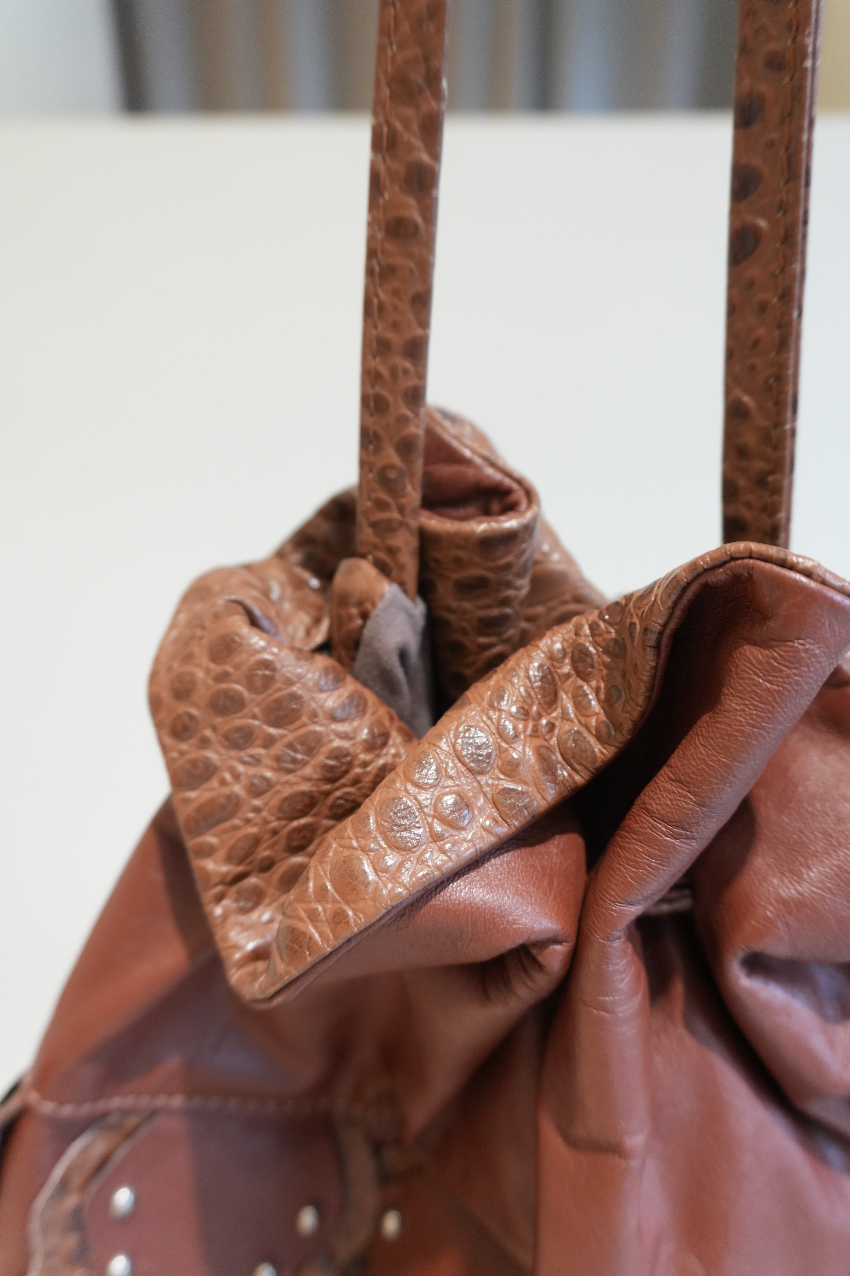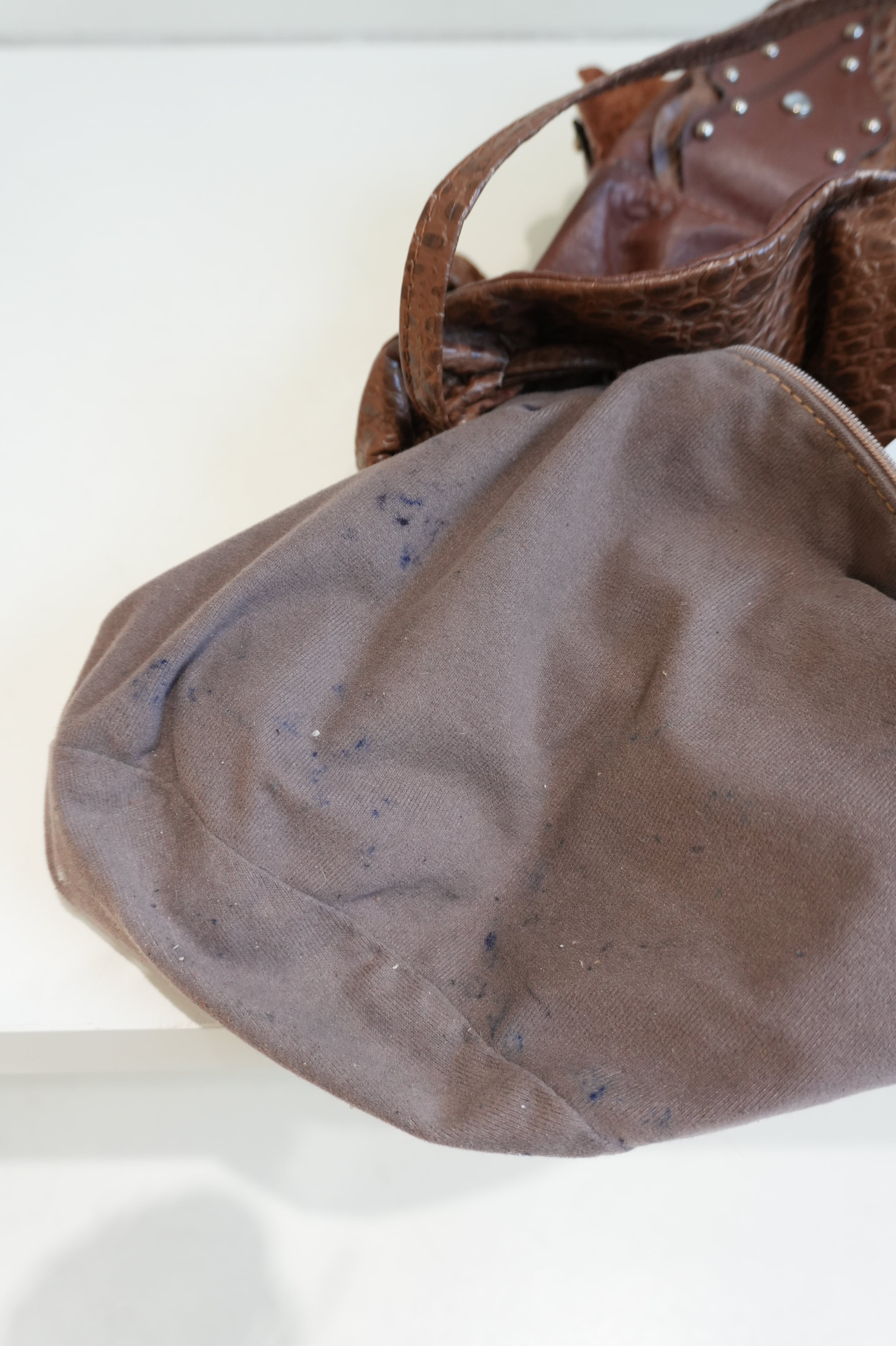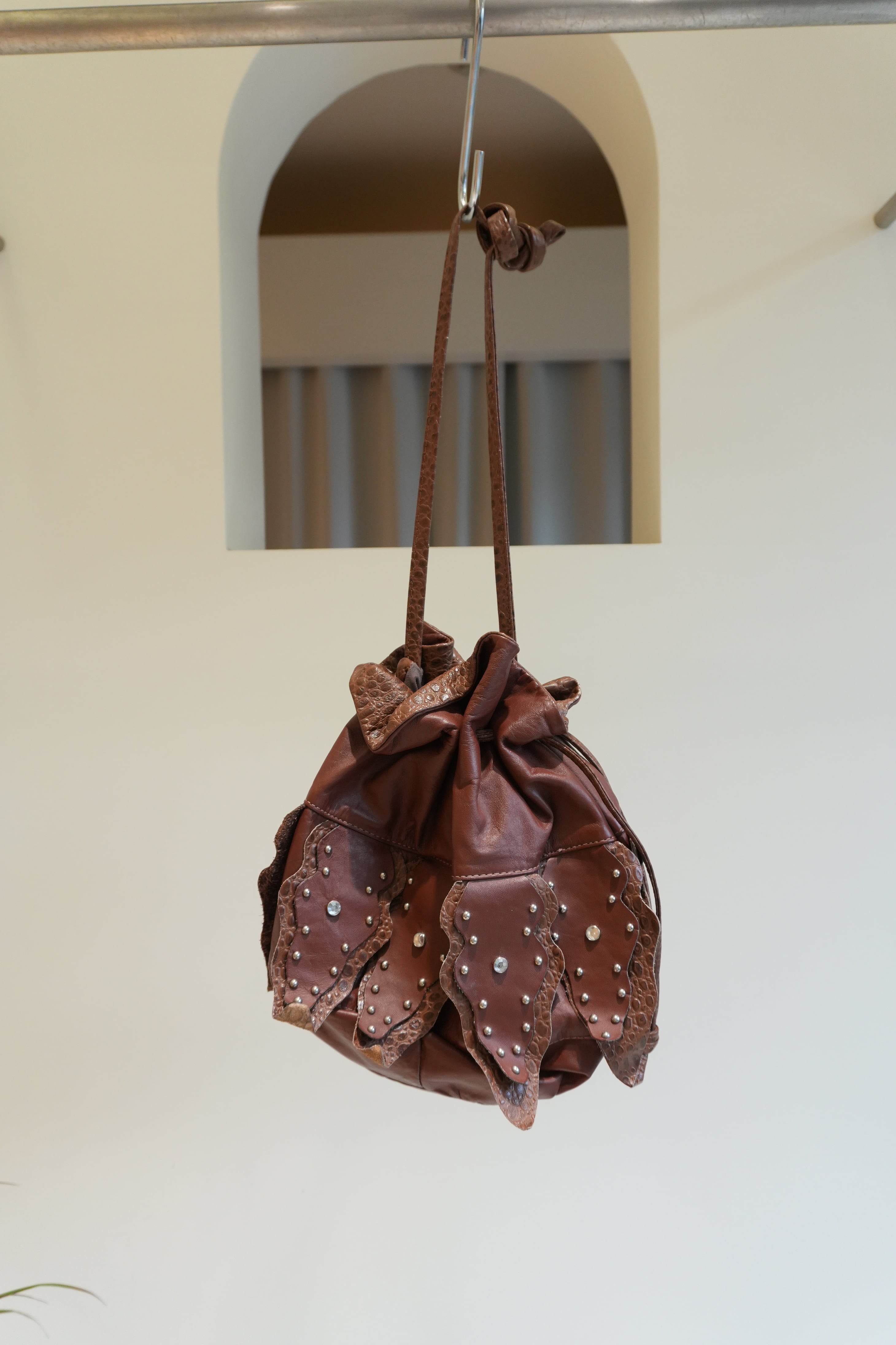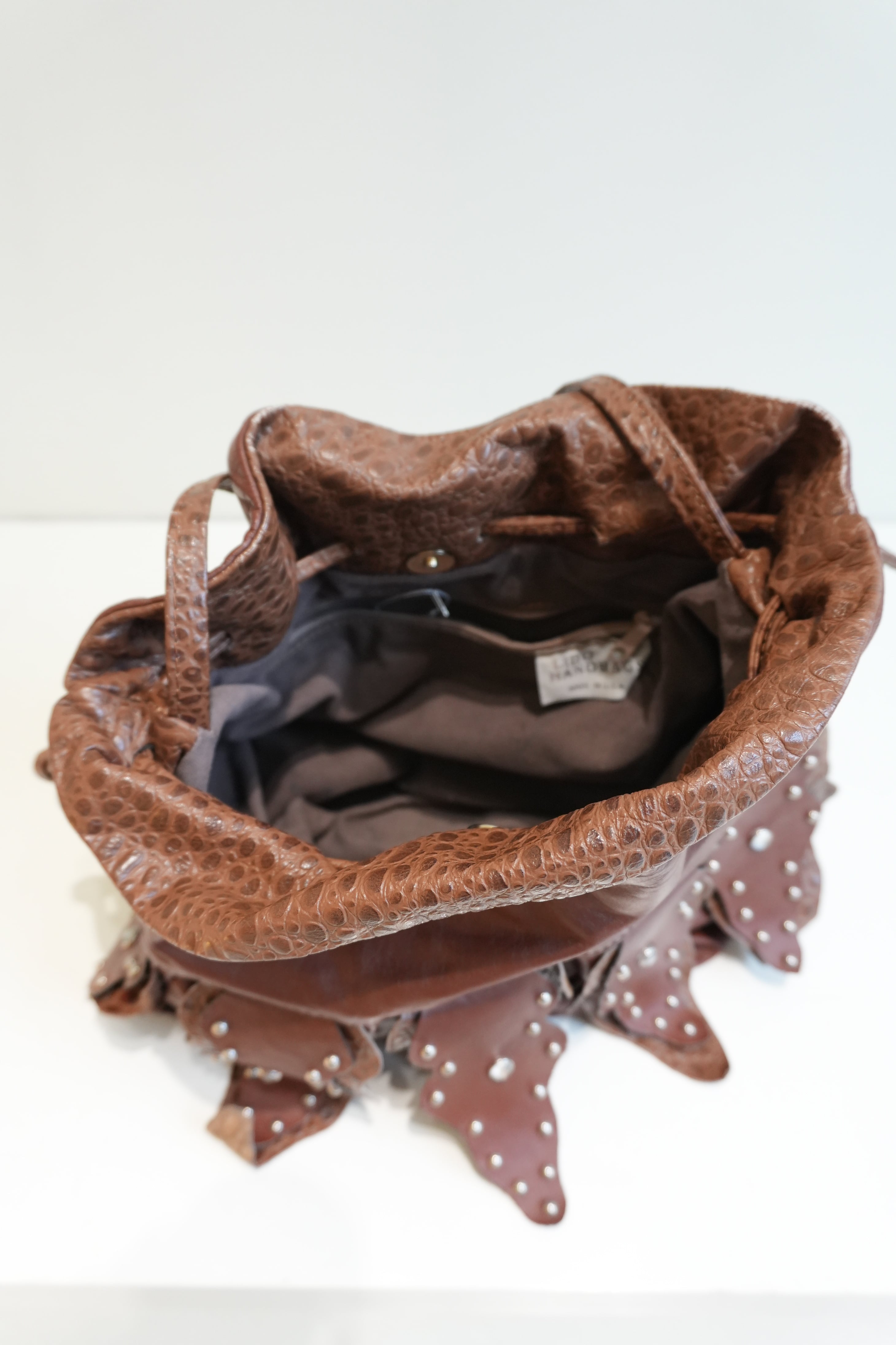 used studs leather bag