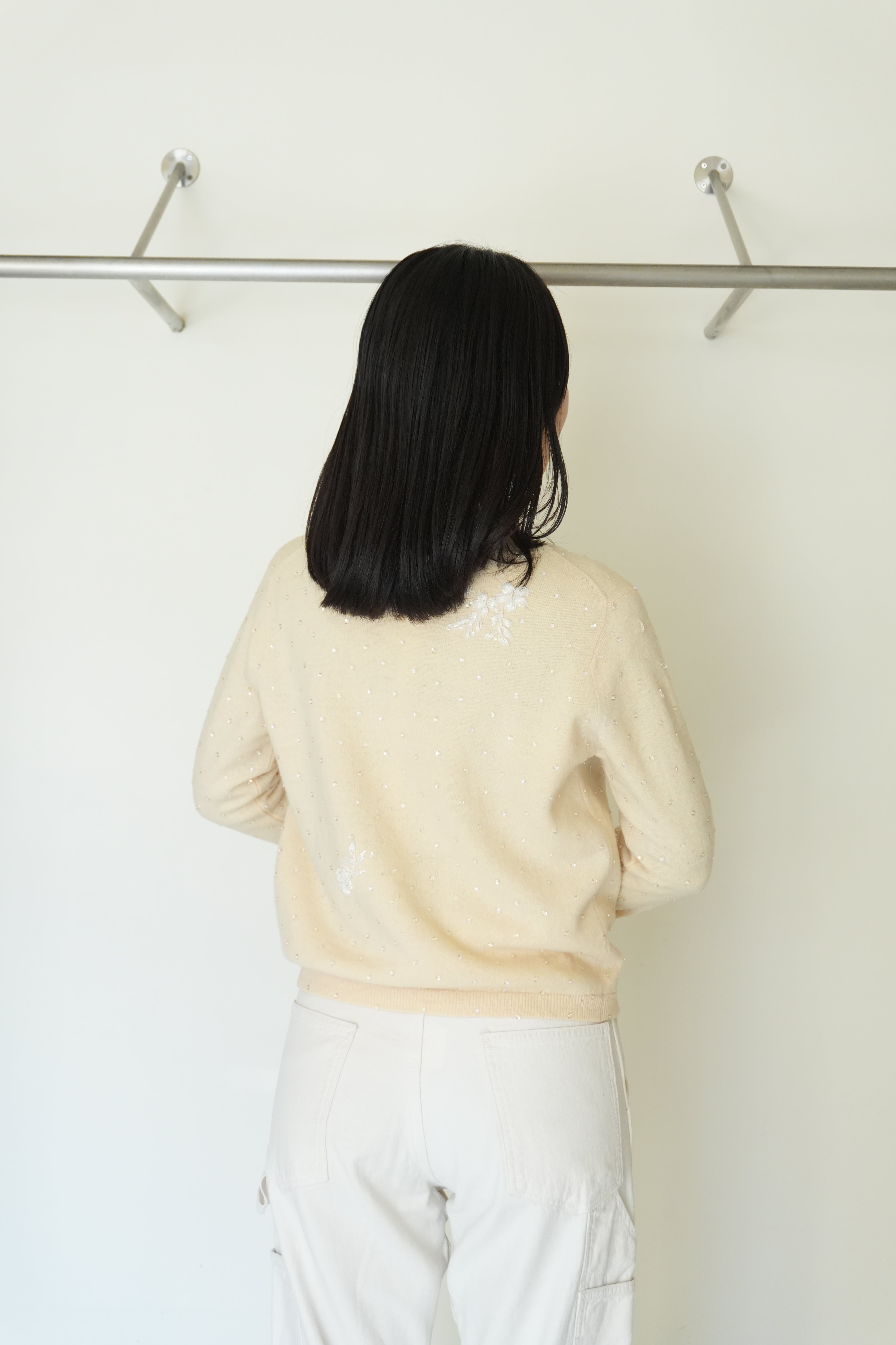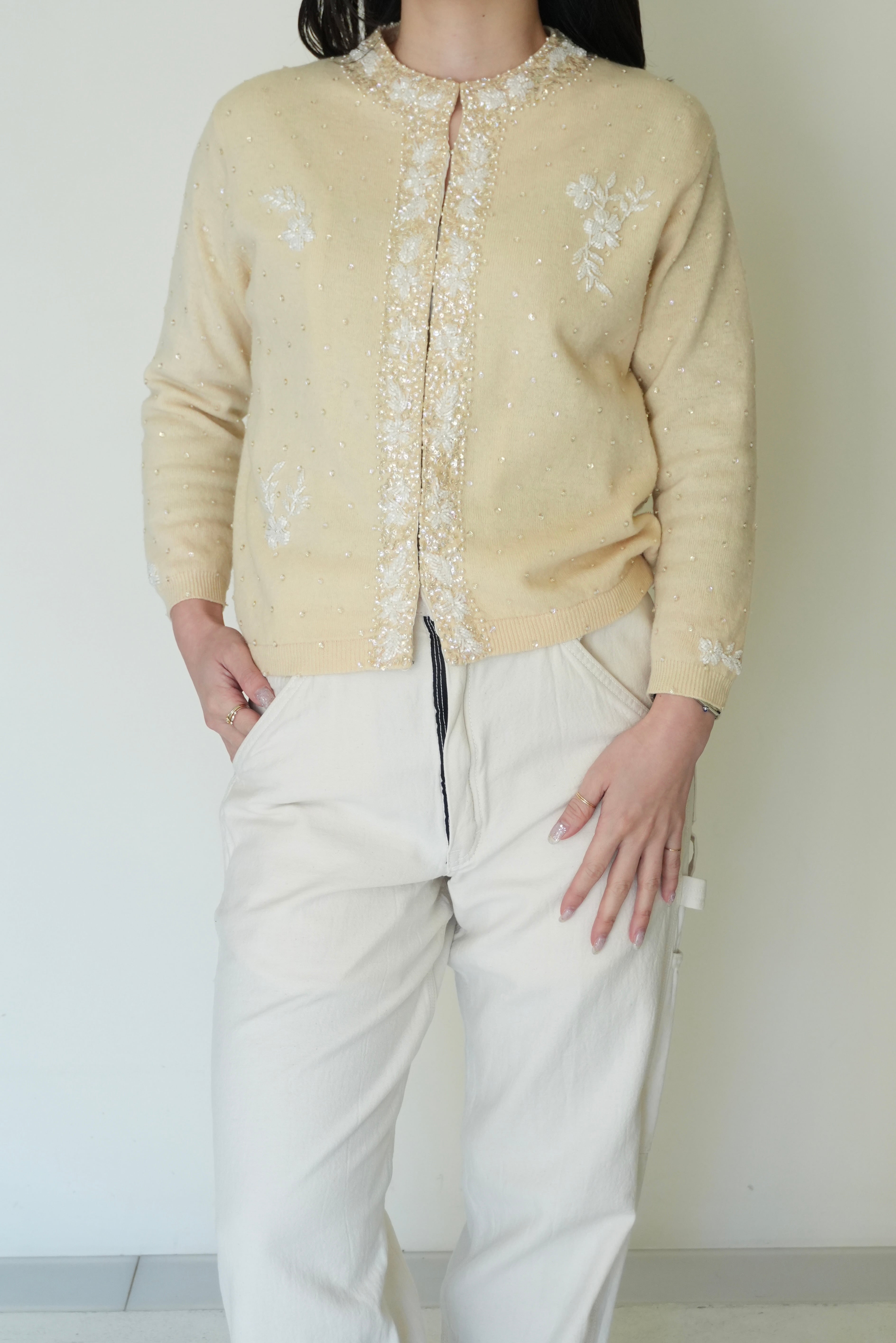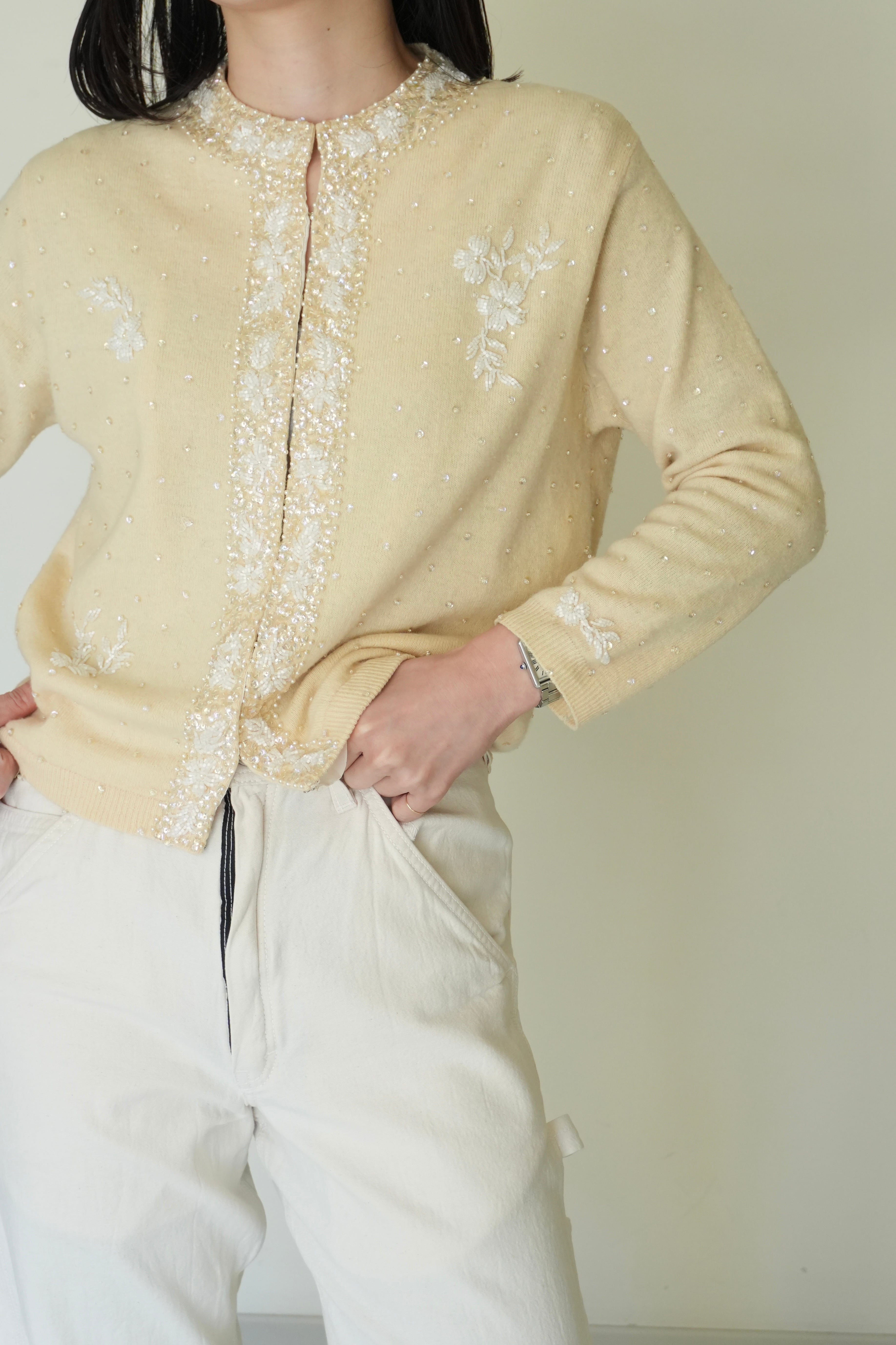 手作業で編まれた刺繍ビーズはうっとりする1着となっております。