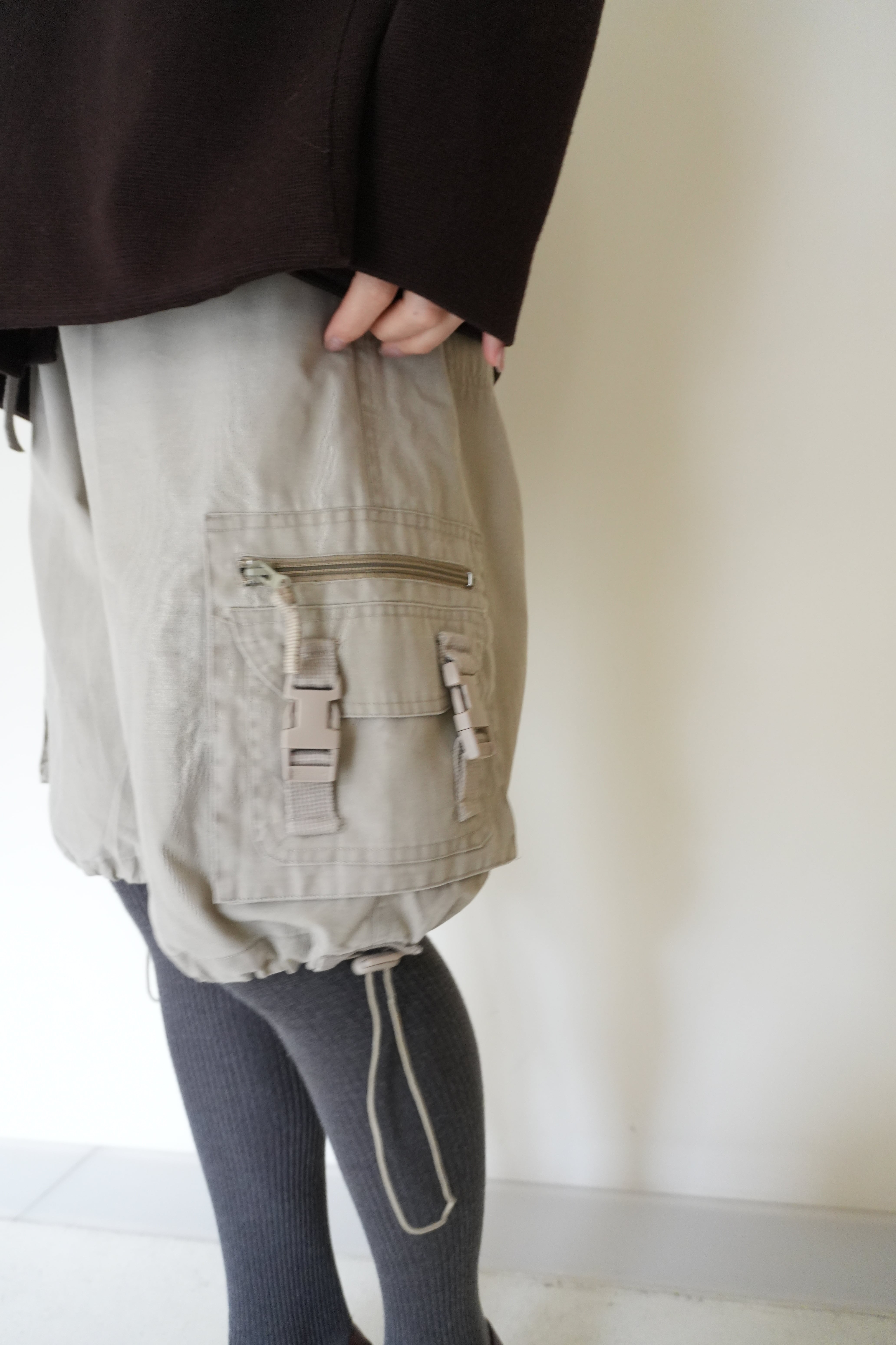 裾が絞れるデザインなので、シルエットを変えて使っていただけます。