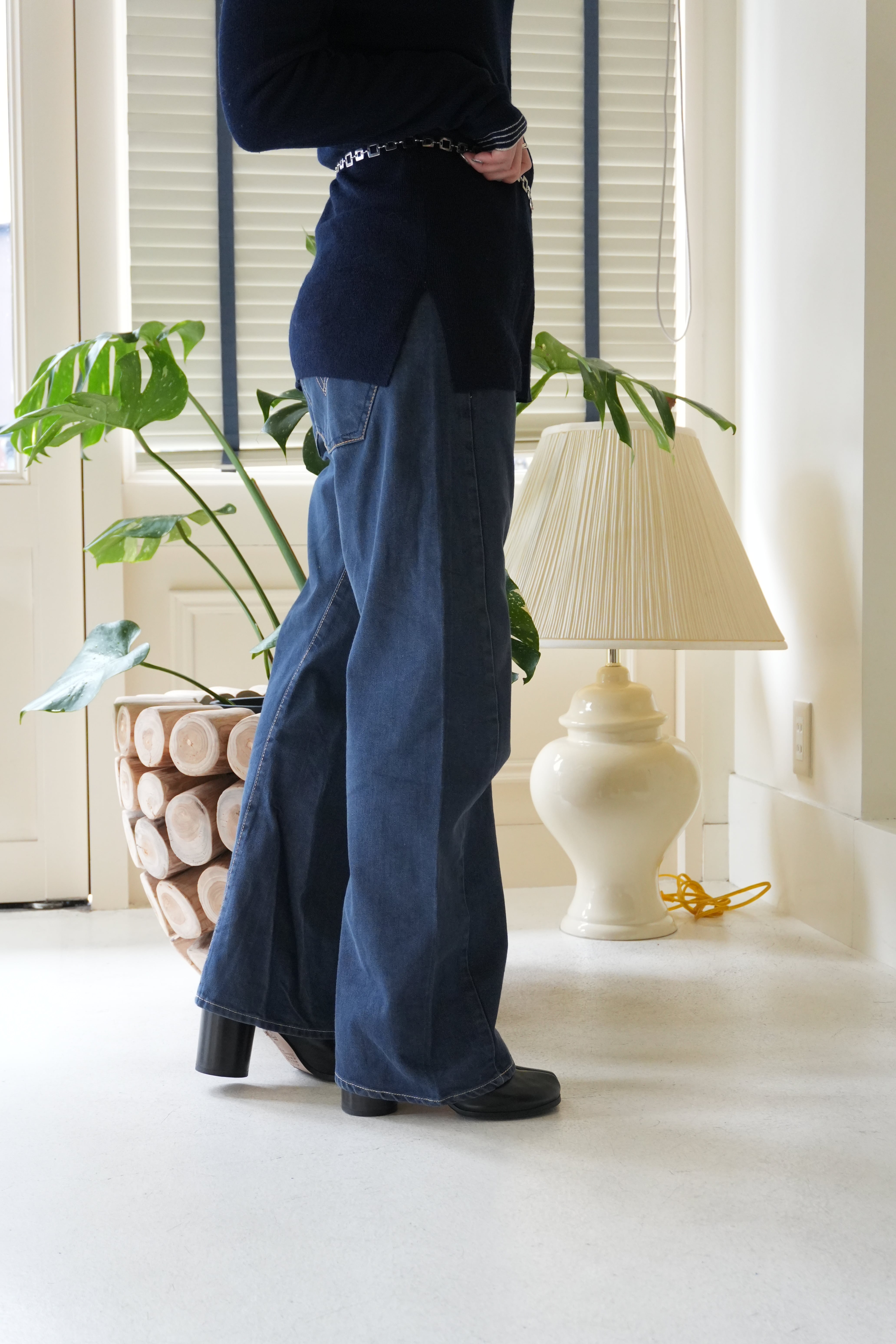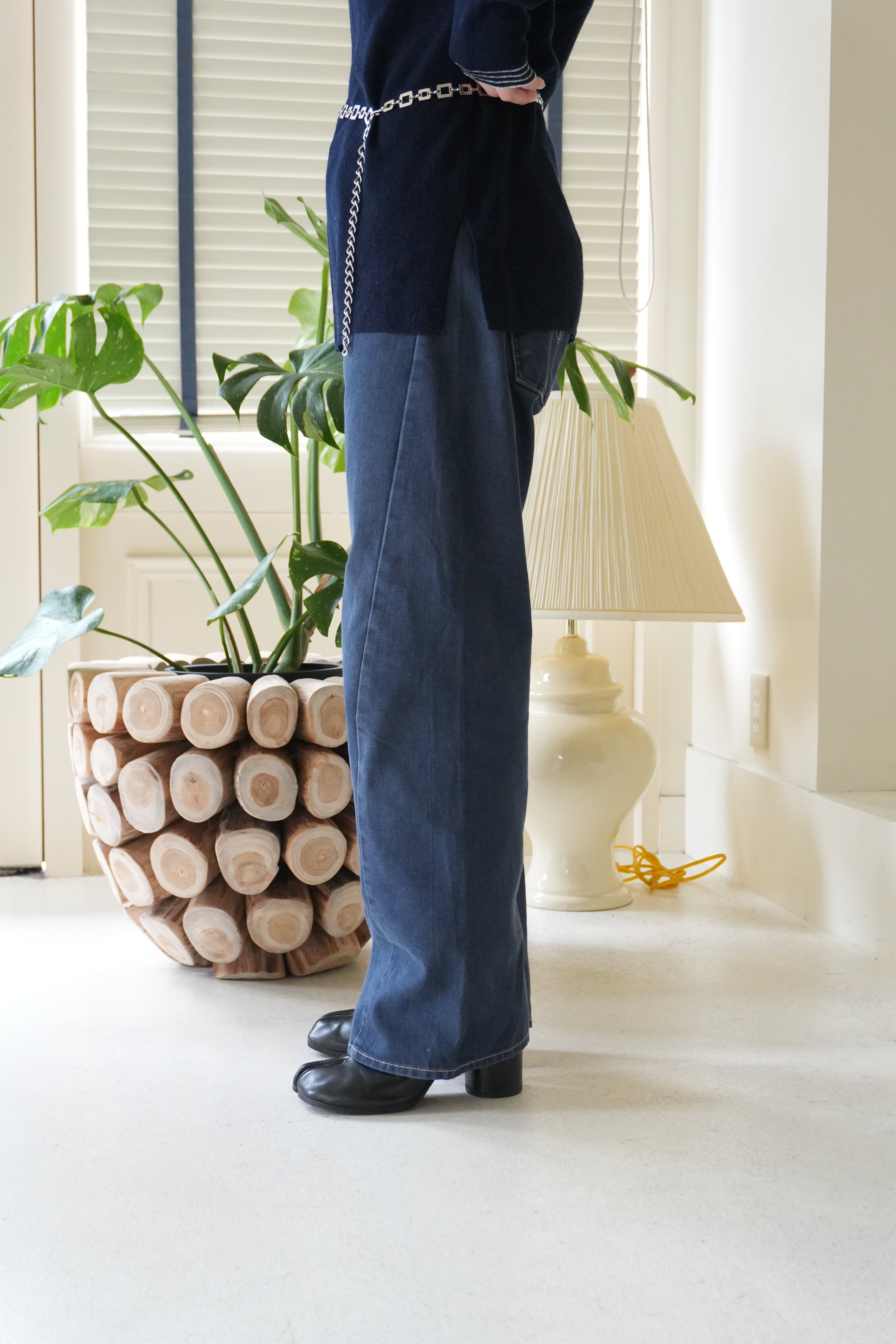 裾前が長めに作られており靴の上にのるようなデザインになるのもポイントです。