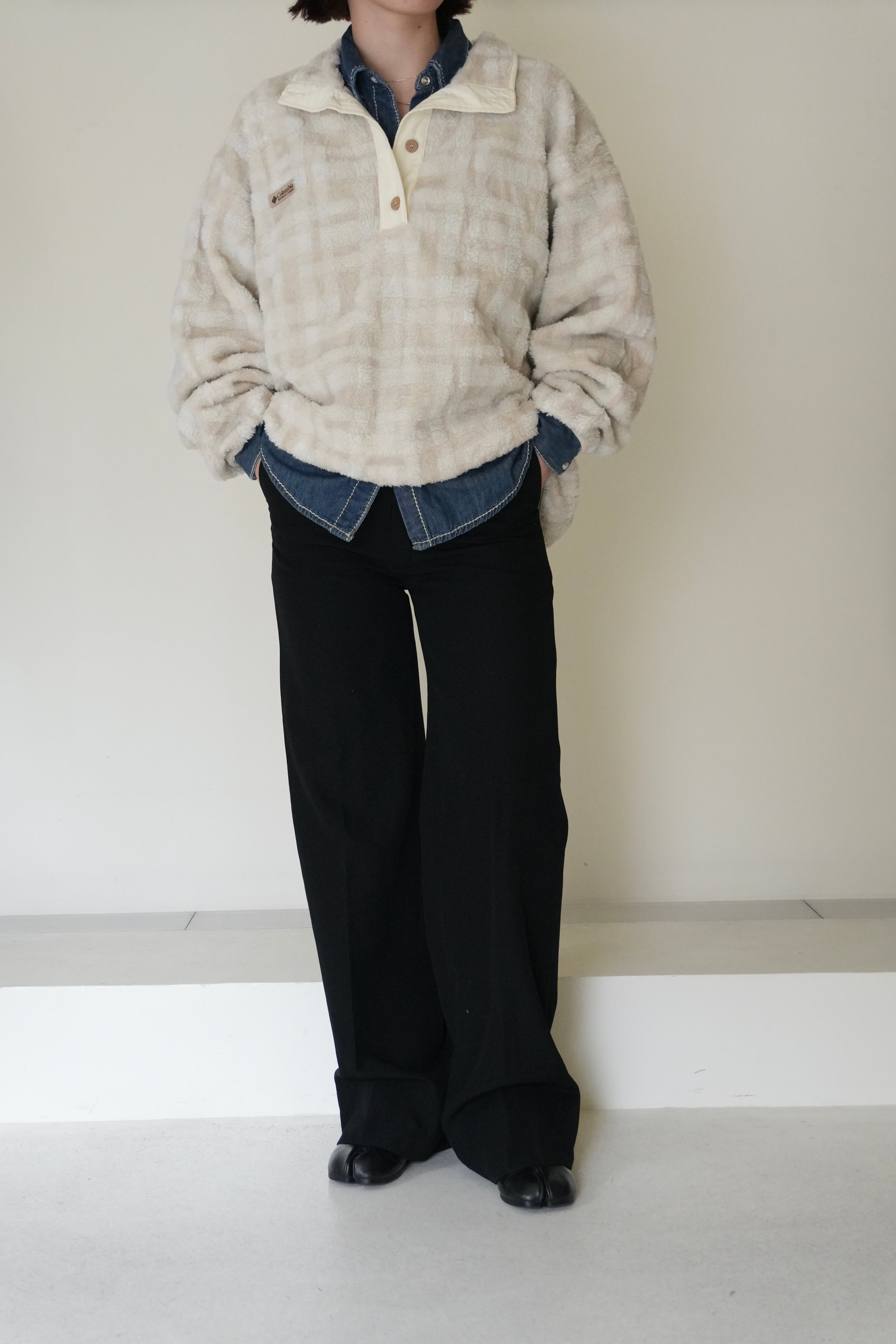 シャツなどレイヤードもしやすいゆったりめのサイズ感です。