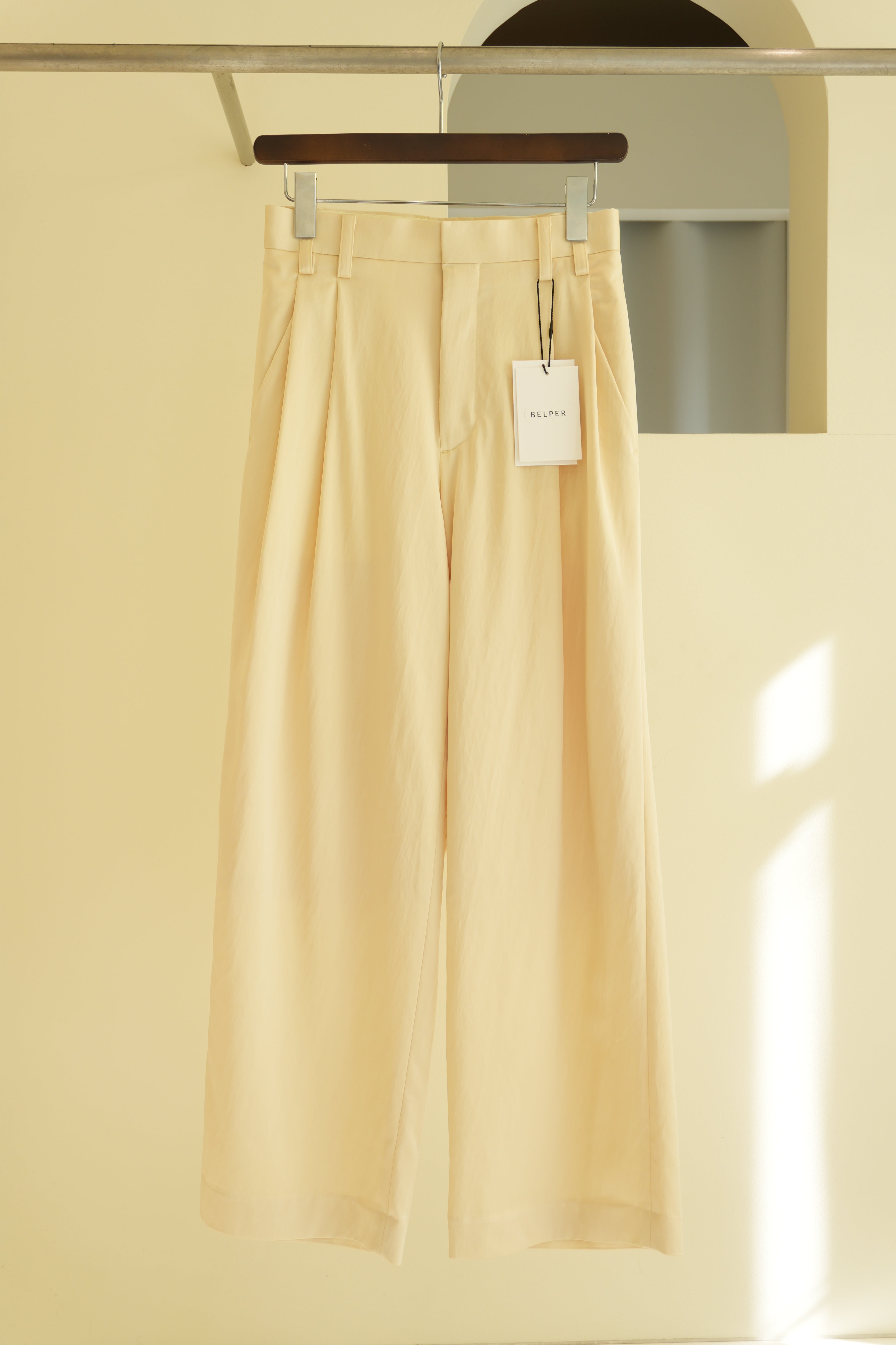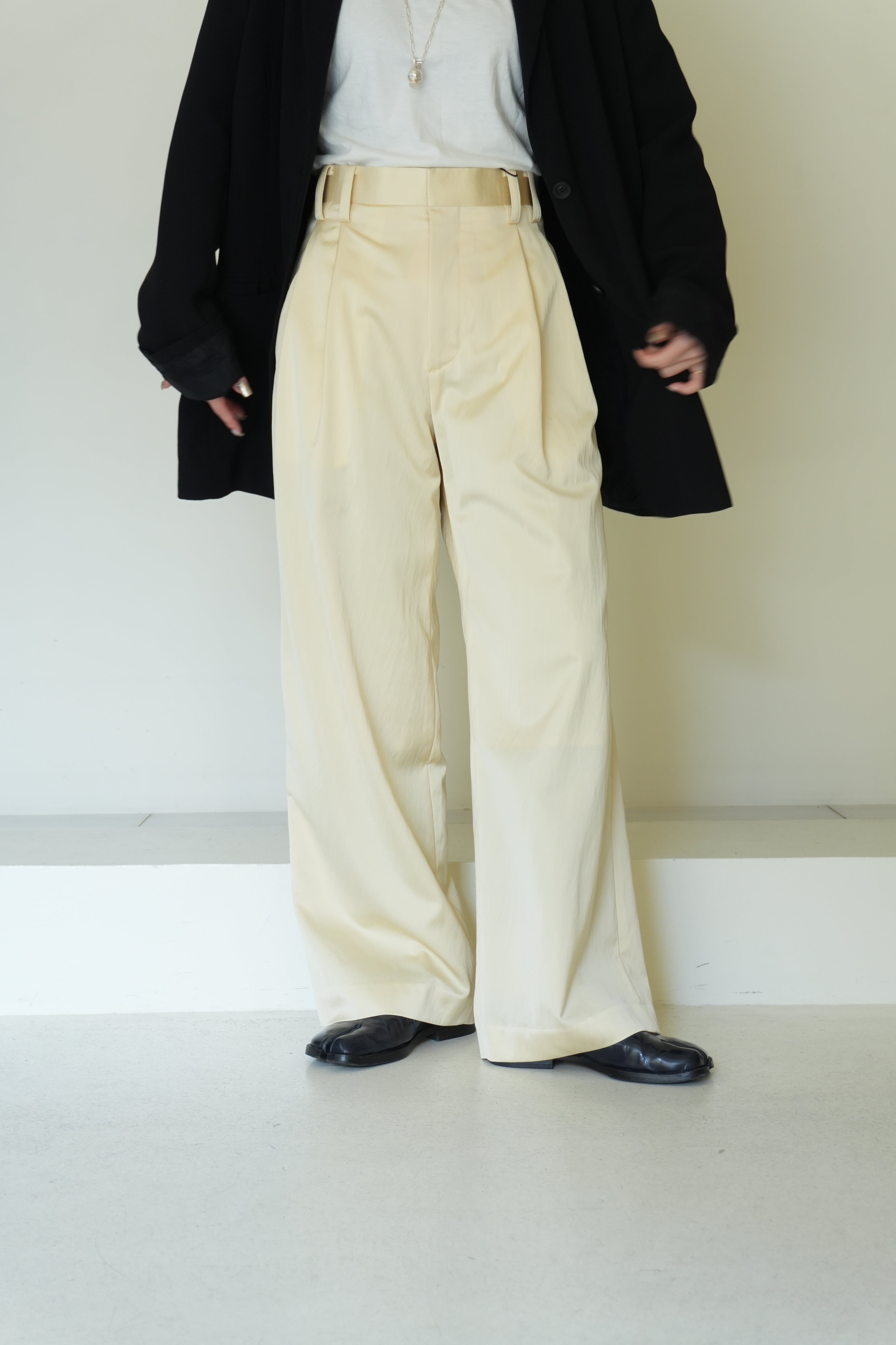【 BELPER 】TUCKED SATIN TROUSERS