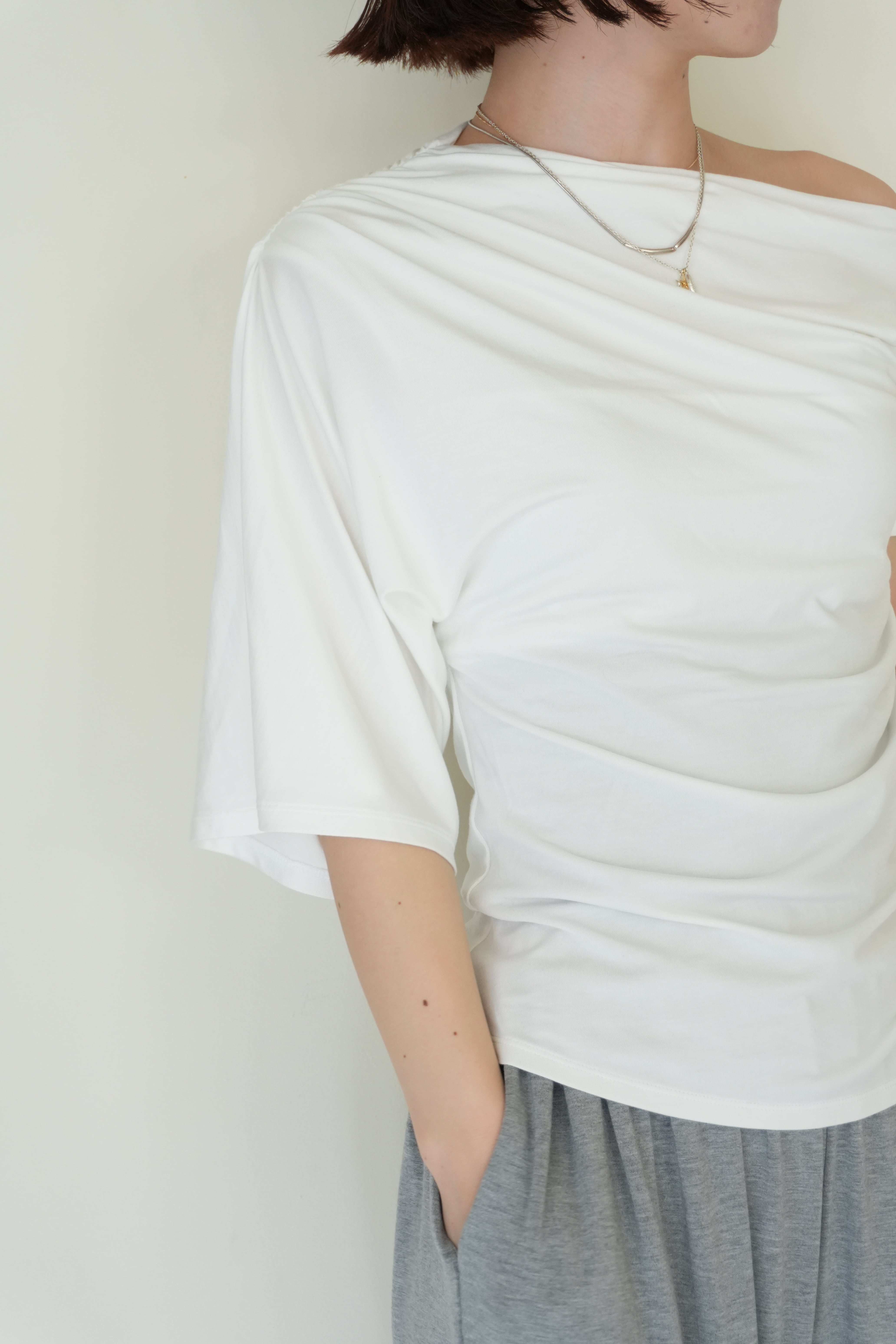 【determ;】Collagen Off-Shoulder Draped Top(white)