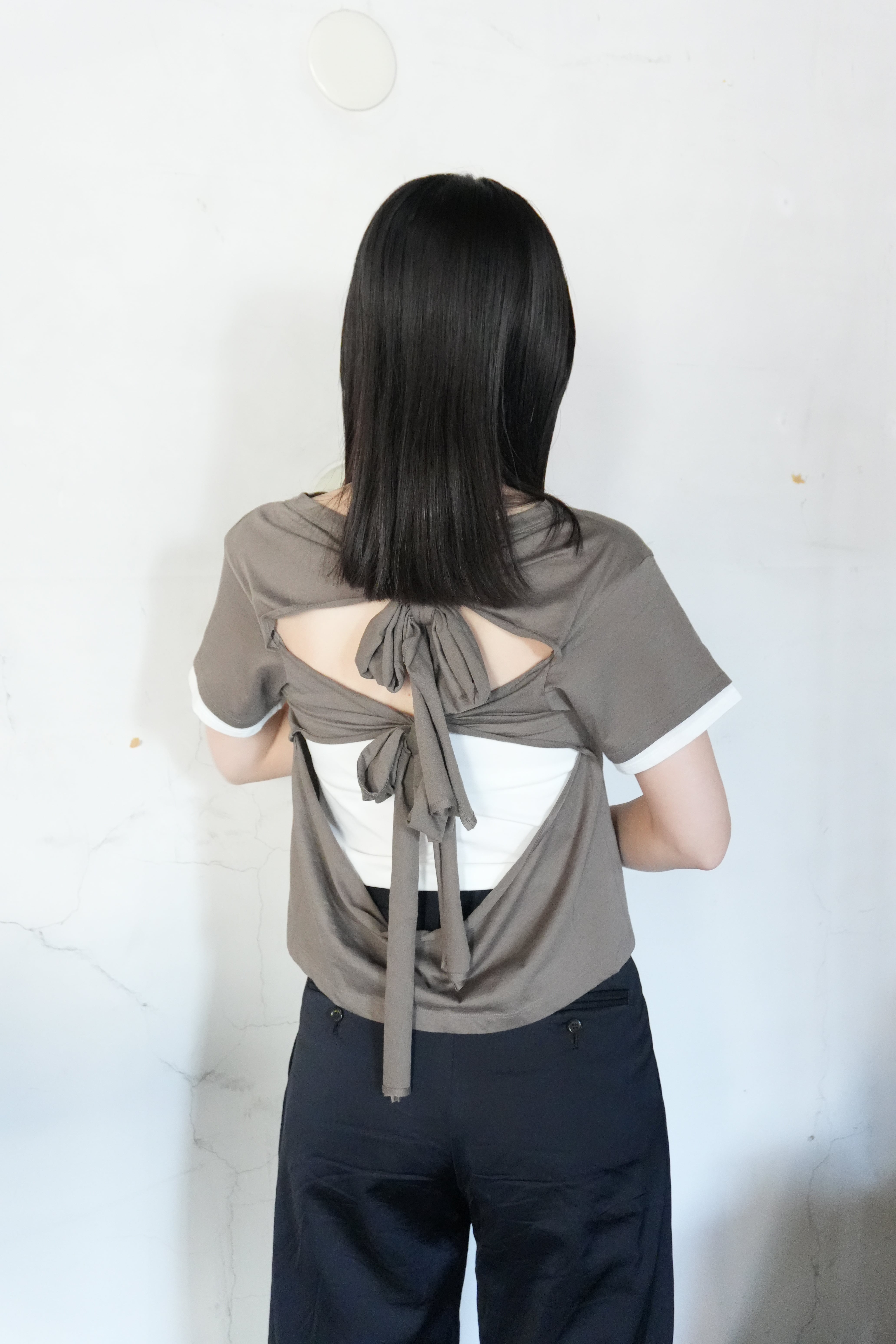 【KAYLE】BACK RIBBON TEE(CHARCOAL)