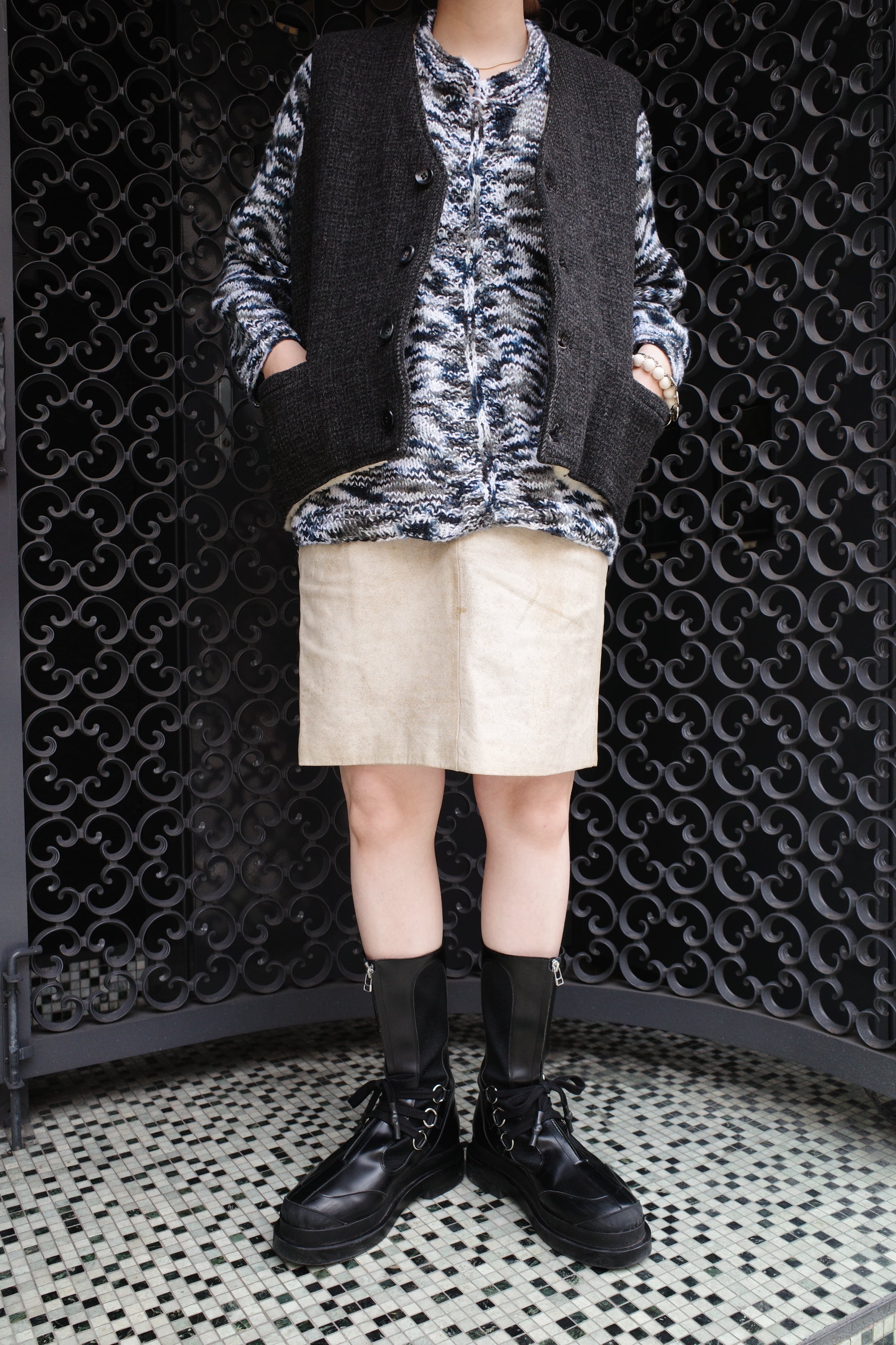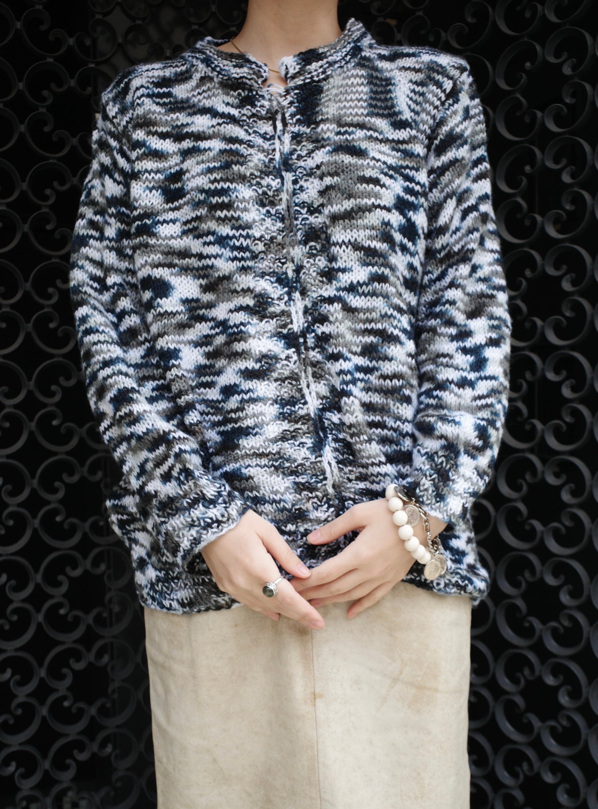 おそらくハンドニットで制作されたニットトップス。