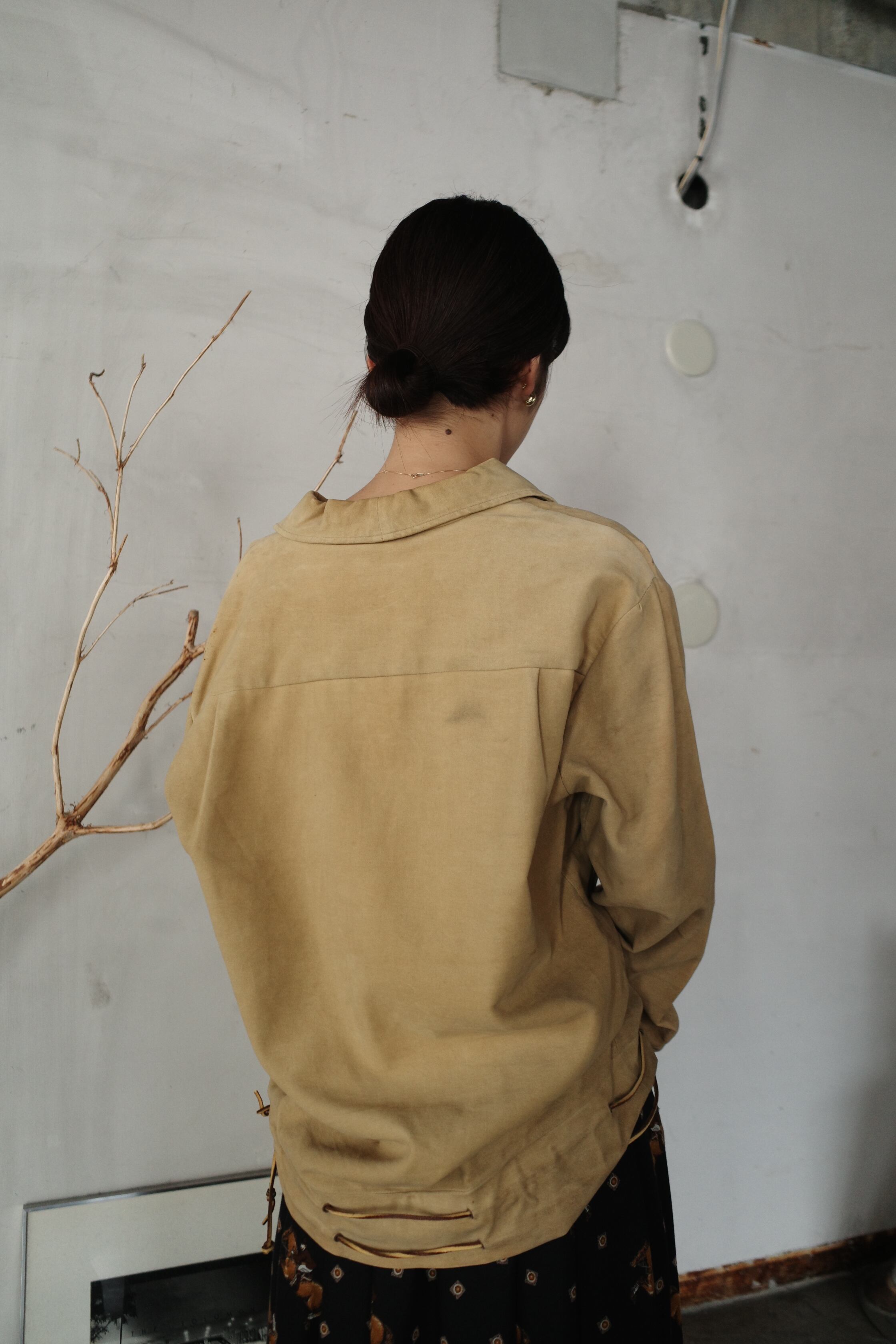 スエードのような柔らかい生地にレースアップのデザインがアクセントになるトップス。