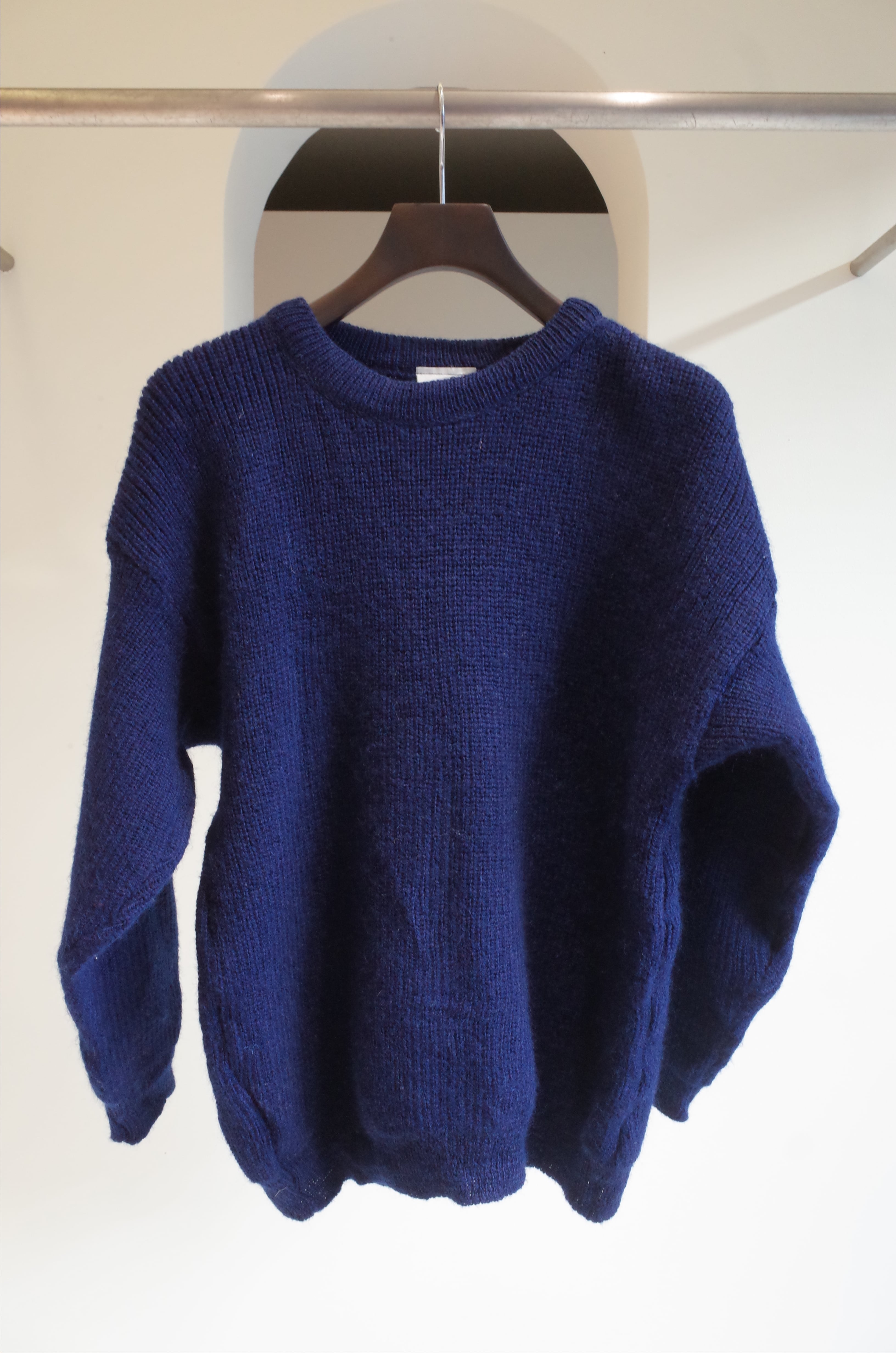 ネイビーより明るめなカラーのニット。
