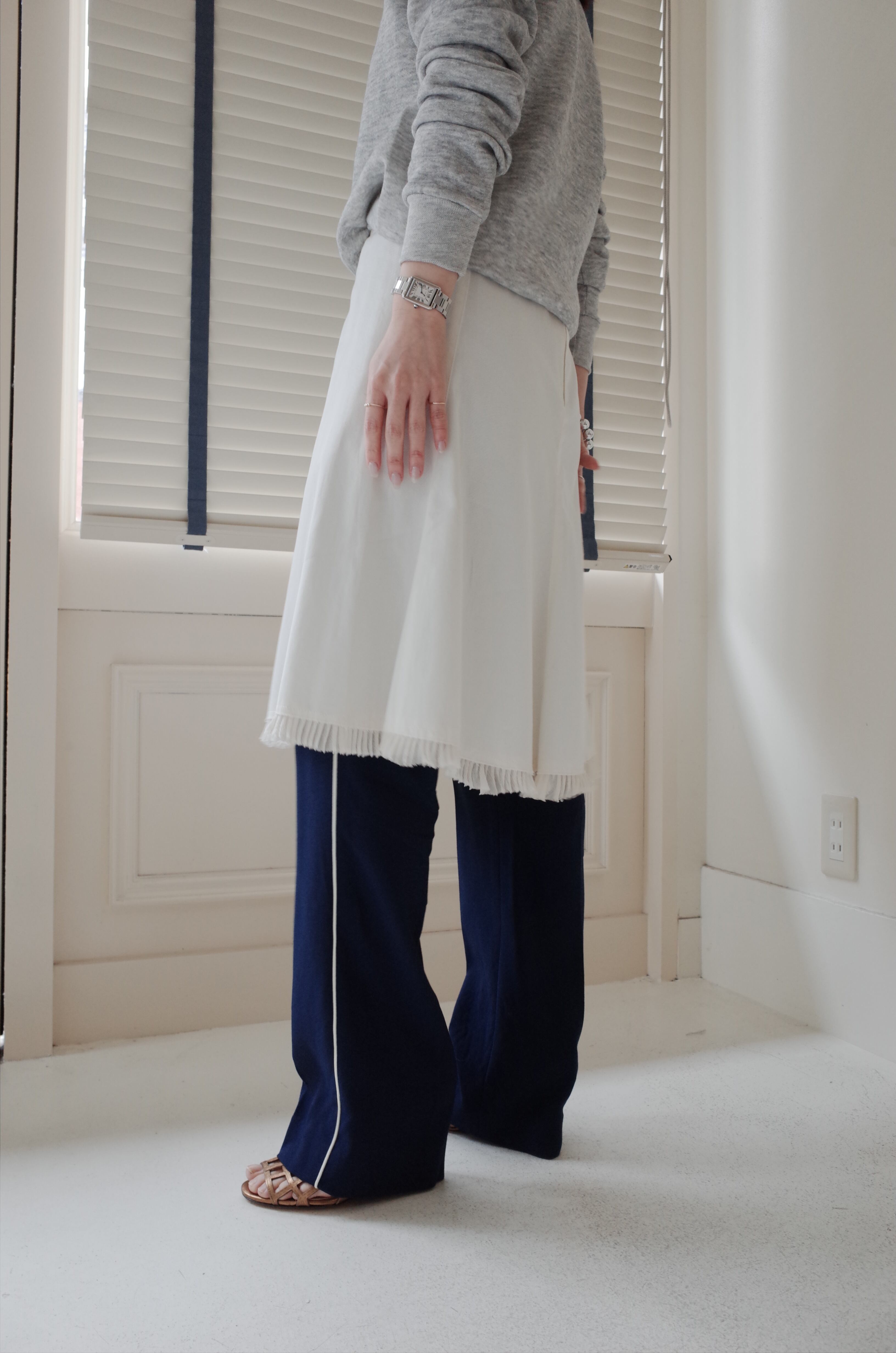ナチュラルなカラーがなじみが良くレイヤードにおすすめなスカートです。