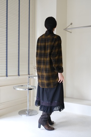 深く落ち着きのあるカラーリングが格好良いチェックシャツ。