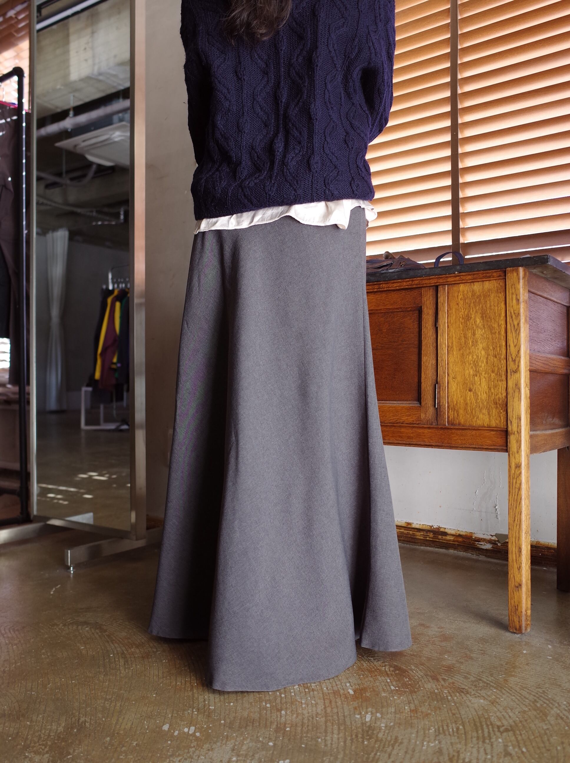 裾に向けて広がるシルエット。